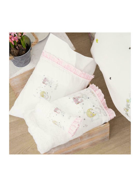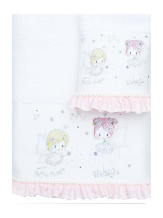 Σετ πετσέτες 2 τεμαχίων, μπάνιου και χειρός, από ύφασμα φροτέ πενιέ, 100% βαμβακερό, μονόχρωμο, λευκό, με υφασμάτινη φάσα με χρώμα ροζ και ψηφιακή εκτύπωση, σχέδιο magic.