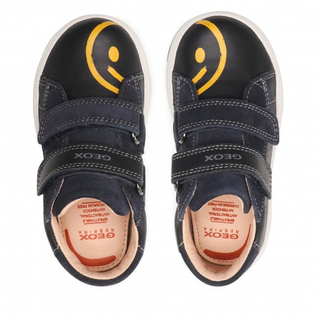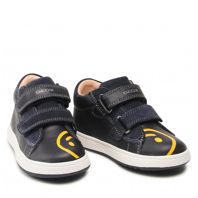 Παιδικά μποτάκια από την εταιρεία Geox, σε μπλε χρώμα. Κατασκευασμένα από δέρμα και δερμάτινο, ανατομικό πάτο. Η σόλα είναι αντιολισθητική με τεχνολογία Respira, που επιτρέπει στο πόδι να αναπνέει. Κλείνουν με δυο αυτοκόλλητα Velcro για γρήγορη και άψογη εφαρμογή. Ιδανική επιλογή για τις βόλτες ή το παιχνίδι τους.