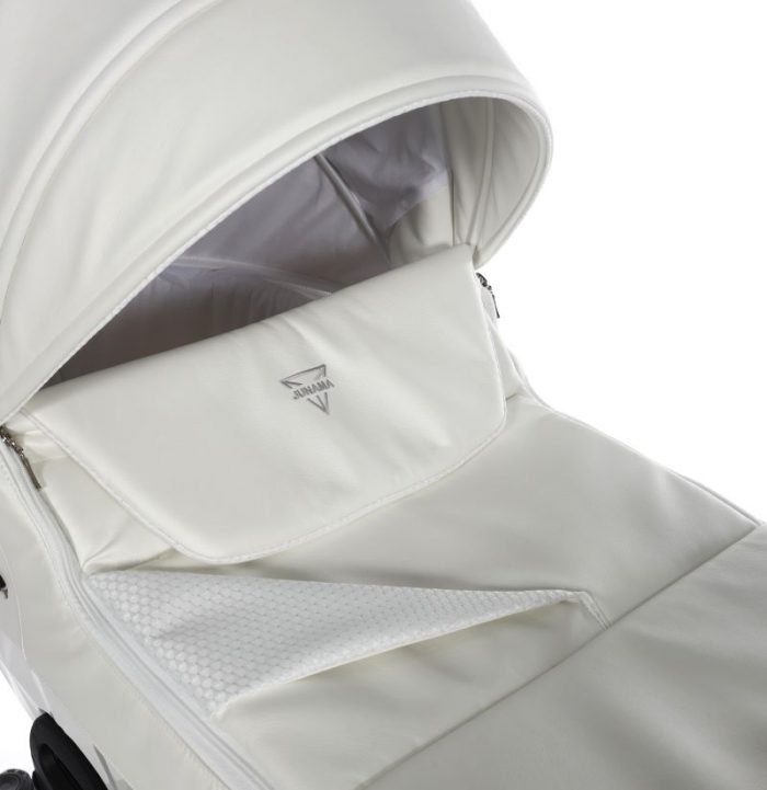 Ο σκελετός αλουμινίου του καροτσιού Junama είναι μελετημένος και μοντέρνος, διαθέτει ένα εύχρηστο σύστημα διπλώματος, με ένα μόνο κουμπί αναδίπλωσης στη λαβή του.