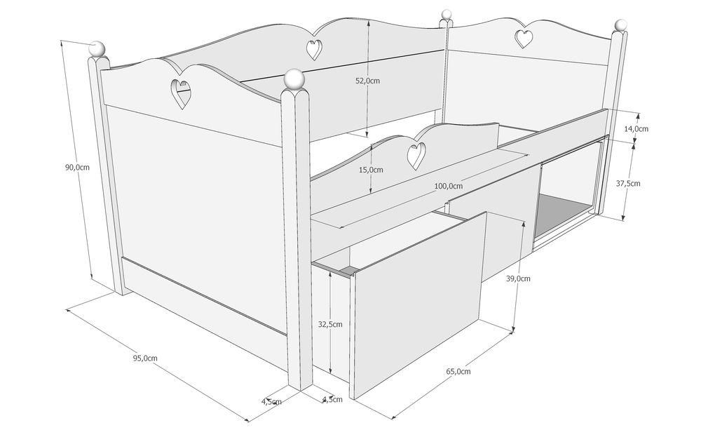 Just Baby Προεφηβικό Παιδικό Κρεβάτι BOX HERZ Με 3 Συρτάρια Λευκό