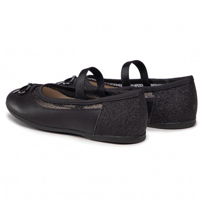 Παιδικές μπαλαρίνες Mayoral με λάστιχο για ευκολία στην εφαρμογή σε υπέροχο σχέδιο με μικρό φιογκάκι. Σε μαύρο χρώμα και λεπτομέρειες τούλι .Εσωτερικός δερμάτινος πάτος και αντιολισθητική σόλα.